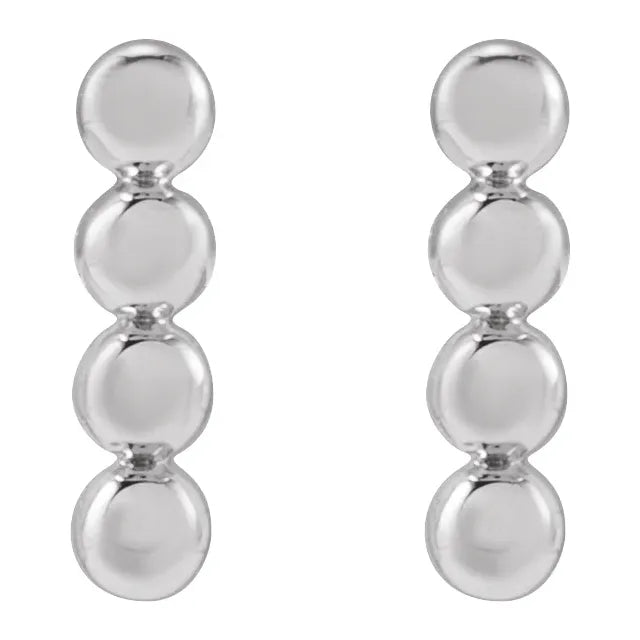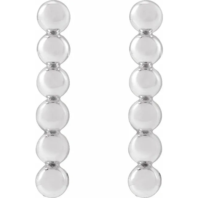 14K White Gold Beaded Bar EarringsWeight: 0.3654 DWT (0.57 grams) Earring Back Type Included: Friction Backs Included Earring Closure: Friction Post and Back Earring Type: Drop Post Diameter: .03 In Post Length: .37 In Selling Unit of Measure: PR Approx. Length: 6 mm Gender: Ladies Plating Type: Rhodium-Plated Earring Post Type: Friction Post Surface Finish: Polished Primary Stone Shape: N/A Diamond Clarity: N/A Diamond Color: N/A Primary Stone Type: N/A Earring Dimensions: 6x1.5 mm- Regular price