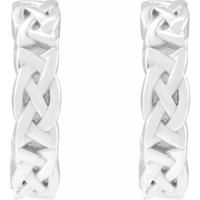 14K White Gold Celtic-Inspired Hoop EarringsWeight: 1.3652 DWT (2.12 grams) Earring Back Type Included: Friction Backs Included Earring Closure: Friction Post and Back Earring Type: Hoop Post Diameter: .03 In Post Length: .37 In Selling Unit of Measure: PR Surface Finish: Polished Diamond Color: N/A Plating Type: Rhodium-Plated Earring Post Type: Friction Post Approx. Length: 10.25 mm Approx. Width: 2.72 mm Primary Stone Type: N/A Earring Dimensions: 2.72x10.25 mm Primary Stone Shape: N/A Diamond Clarity:...- Regular price