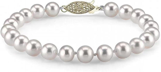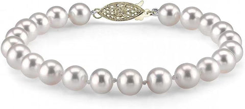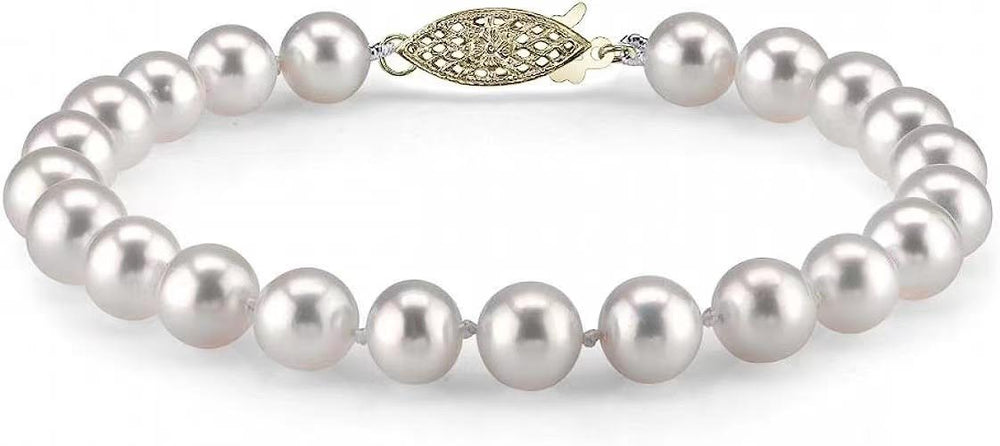 Paris Jewelry White Freshwater Cultured Pearl Bracelet with 18K Yellow Gold Plated Clasp, 7.0-7.5mm