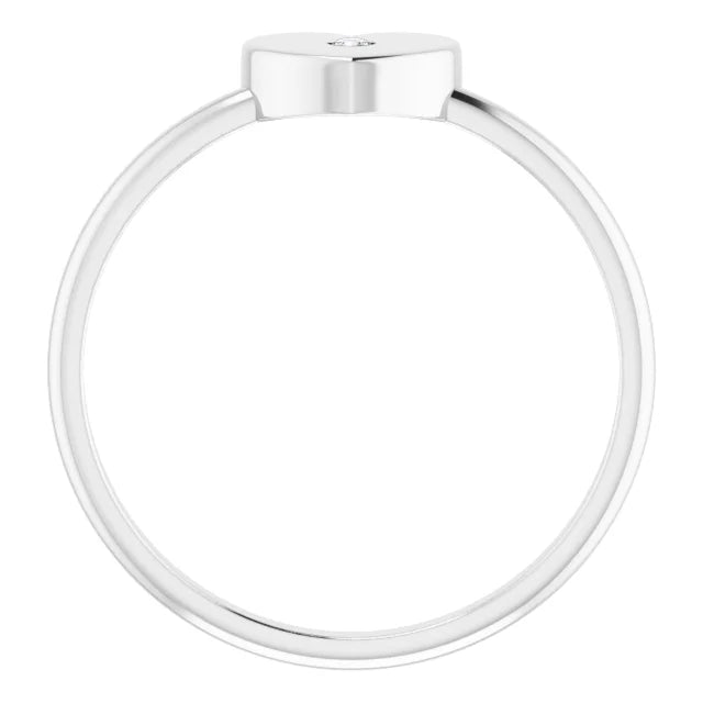 14K White Gold Round Petite Signet RingWeight: 1.993 DWT (3.10 grams) Approx. Shoulder Width: 2.29 mm Approx. Finger Size: 7 Approx. Top Height: 2.52 mm Approx. Shank Base Width: 1.62 mm Ring Fit: Standard Approx. Shank Base Thickness: 1.4 mm Primary Stone Shape: N/A Metal Shape: Round Selling Unit of Measure: EA Solid/Hollow: Solid Gender: Ladies Surface Finish: Brush Finished Top Plating Type: Rhodium-Plated Approx. Top Dimensions: 6.08 mmx5.79 mm Diamond Clarity: N/A Primary Stone Type:...- Regular price