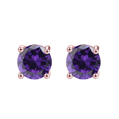 10k Rose Gold Plated 4 Carat Round Created Purple Amethyst Stud Earrings10k Rose Gold Plated 4 Carat Round Created Purple Amethyst Stud Earrings