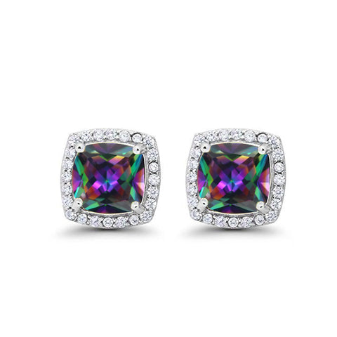 10k White Gold Plated 1 Ct Created Halo Princess Cut Mystic Topaz Stud Earrings