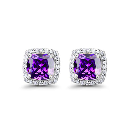 10k White Gold Plated 3 Ct Created Halo Princess Cut Amethyst Stud Earrings