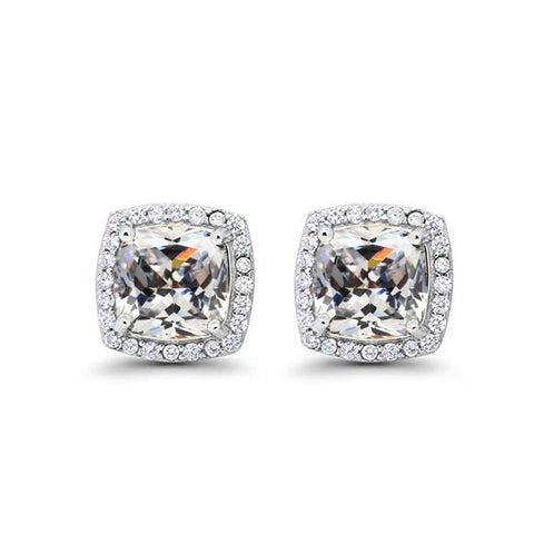 10k White Gold Plated 3 Ct Created Halo Princess Cut White Sapphire Stud Earrings