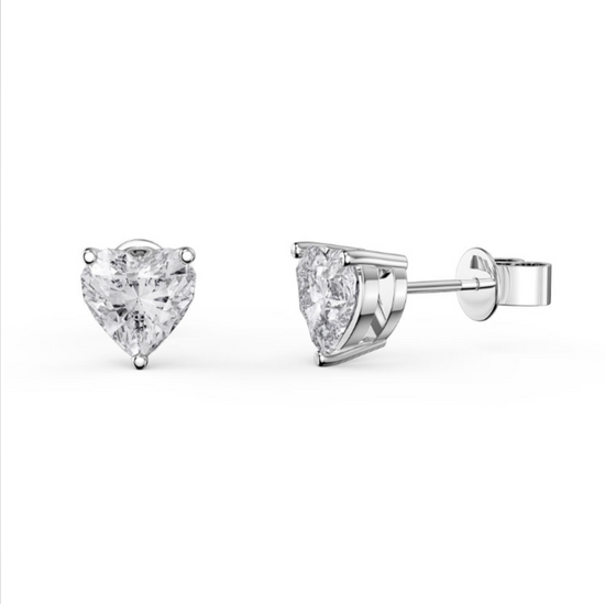 10k White Gold Plated 4 Carat Heart Created White Sapphire Stud Earrings