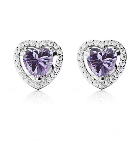 10k White Gold Plated 4 Ct Created Halo Heart Tanzanite Stud Earrings