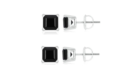 10k White Gold Plated Created Black Sapphire 4Ct Square Cut Pack of Two Stud Earrings