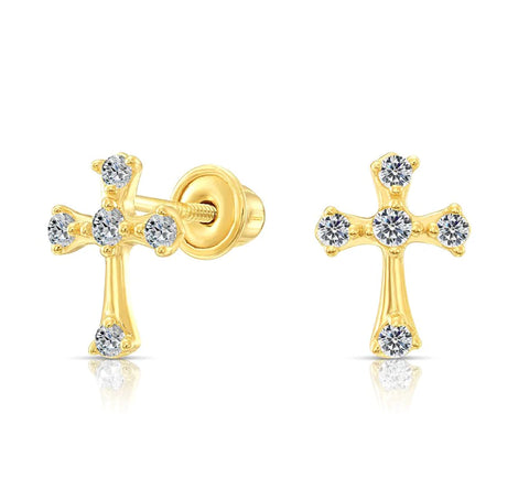 10k Yellow Gold Cross CZ Stud Earrings10k Yellow Gold Cross CZ Stud Earrings