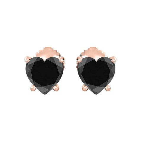 10k Yellow Gold Plated 2 Carat Heart Created Black Sapphire Stud Earrings