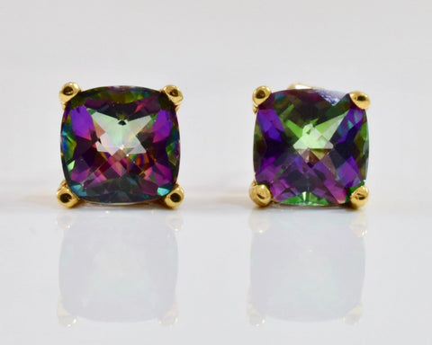 10k Yellow Gold Plated 2 Carat Square Created Mystic Topaz Stud Earrings