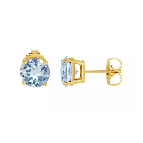 10k Yellow Gold Plated 2 Ct Round Created Aquamarine Sapphire Stud Earrings