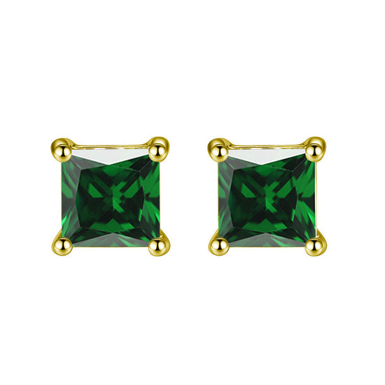 10k Yellow Gold Plated 2 Ct Square Created Emerald Stud Earrings