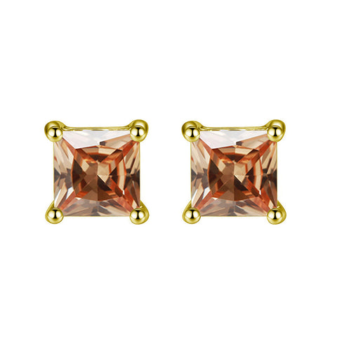 10k Yellow Gold Plated 3 Carat Princess Cut Created Champagne Sapphire Stud Earrings