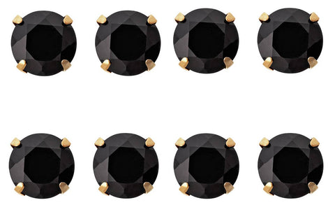 10k Yellow Gold Plated Created Black Sapphire 1/2 Carat Round Pack of Four Stud Earrings