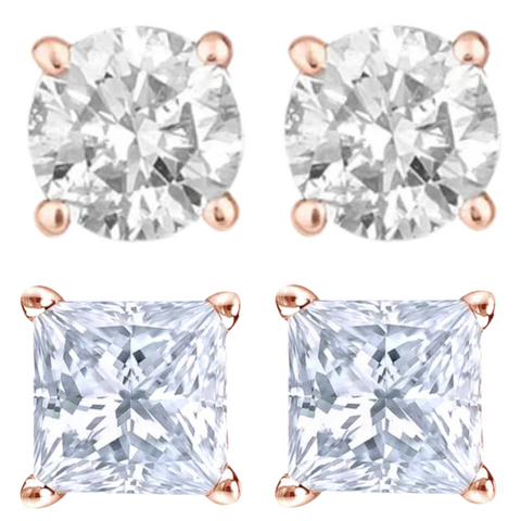14k Rose Gold 1/4 Carat Solitaire Created Diamond 2 Pair Round and Princess Stud Earrings14k Rose Gold 1/4 Carat Solitaire Created Diamond 2 Pair Round and Princess Stud Earrings14k Rose Gold 1/4 Carat Solitaire Created Diamond 2 Pair Round and Princess Stud Earrings