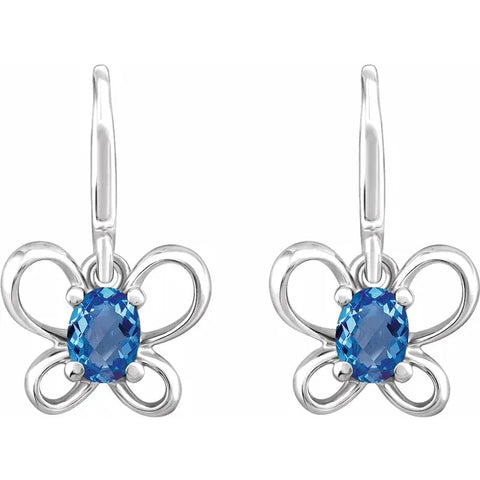 14K White Gold Oval December Youth Butterfly Birthstone Earrings