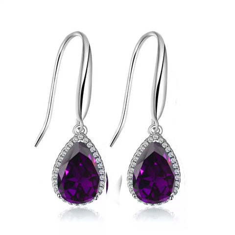 14k White Gold Plated 1/2 Ct Created Alexandrite Teardrop Earrings