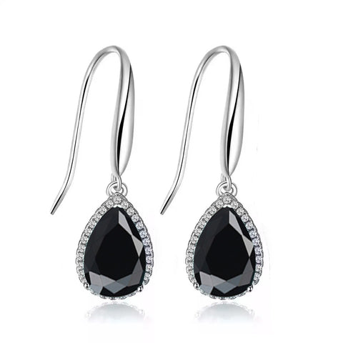 14k White Gold Plated 1/2 Ct Created Black Sapphire Teardrop Earrings