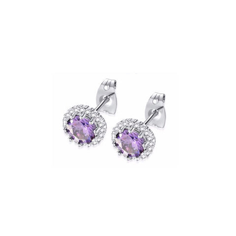 14k White Gold Plated 1/2 Ct Created Halo Round Amethyst Stud Earrings