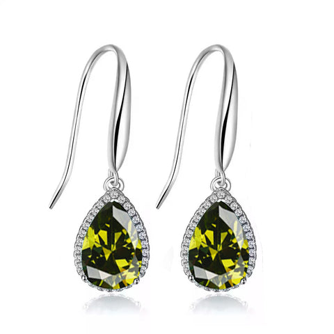 14k White Gold Plated 1/2 Ct Created Peridot Teardrop Earrings