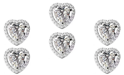 14k White Gold Plated 1/2Ct Heart White Sapphire Set of Three Halo Stud Earrings
