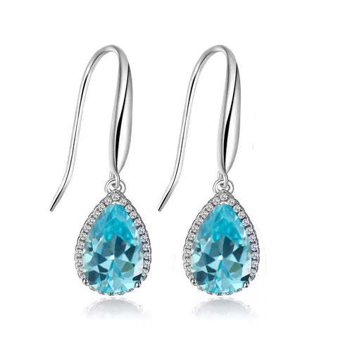 14k White Gold Plated 1 Ct Created Aquamarine Teardrop Earrings