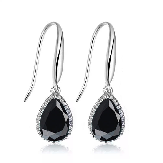 14k White Gold Plated 1 Ct Created Black Sapphire Teardrop Earrings