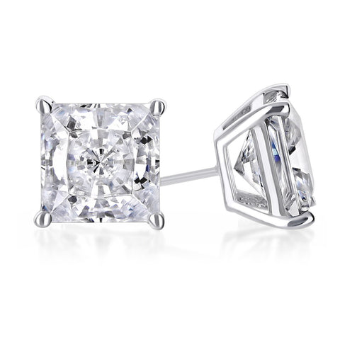 14k White Gold Plated 1 Ct Round Created White Sapphire Princess Cut Stud Earrings