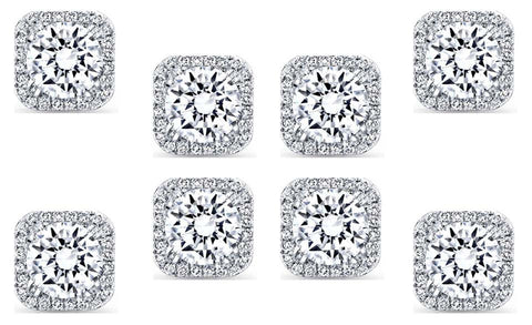14k White Gold Plated 1Ct Square Cut White Sapphire Set of Four Halo Stud Earrings