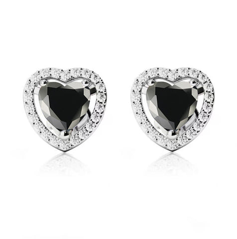 14k White Gold Plated 2 Ct Created Halo Heart Black Sapphire Stud Earrings