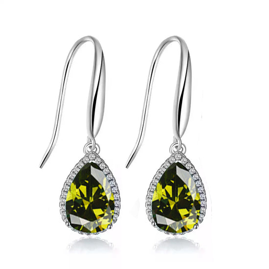 14k White Gold Plated 2 Ct Created Peridot Teardrop Earrings