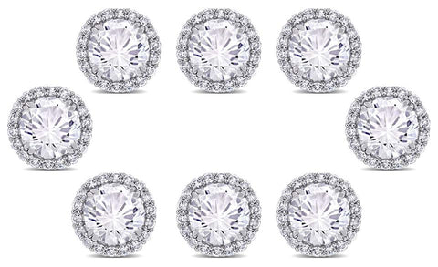 14k White Gold Plated 2Ct Round White Sapphire Set Of Four Halo Stud Earrings