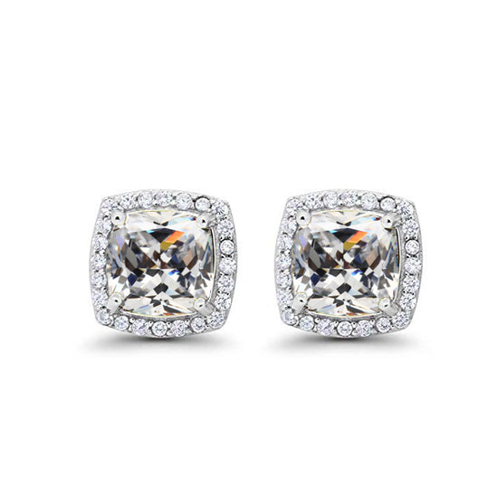 14k White Gold Plated 3 Ct Created Halo Princess Cut White Sapphire Stud Earrings