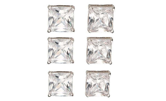 14k White Gold Plated 3Ct Square Cut White Sapphire Set Of Three Stud Earrings