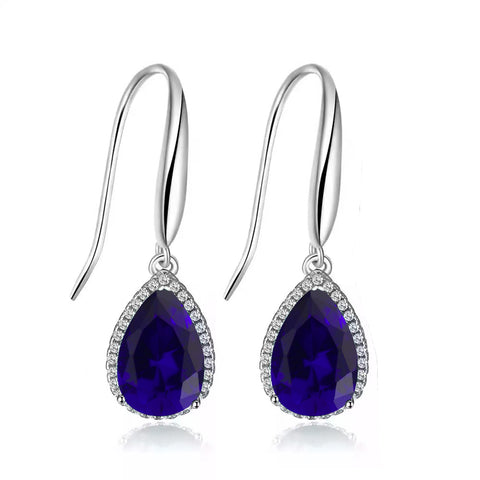 14k White Gold Plated 4 Ct Created Blue Sapphire Teardrop Earrings