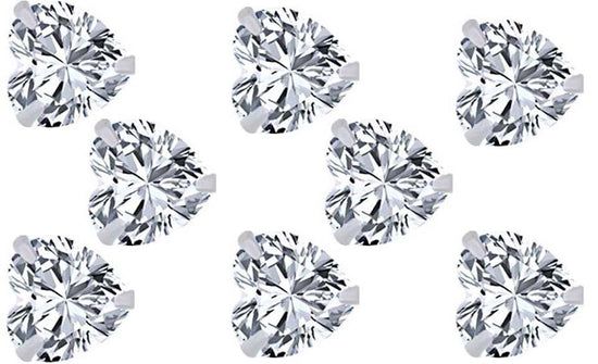 14k White Gold Plated 4mm 4Ct Heart White Sapphire Set Of Four Stud Earrings