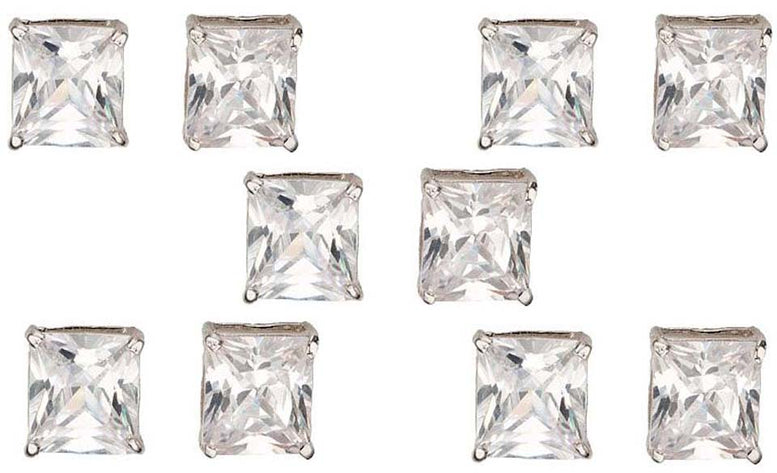 14k White Gold Plated 6mm 2Ct Square Cut White Sapphire Set Of Five Stud Earrings