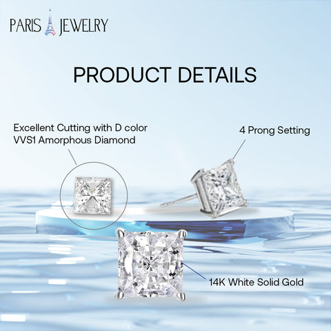 Crafted from 14K solid white gold, these Paris Jewelry stud earrings feature D/VVS1 grade Created White Diamonds, combining sophistication with brilliance. The warm hue of white gold enhances the diamonds' sparkle, offering a luxurious, timeless look suitable for any occasion.