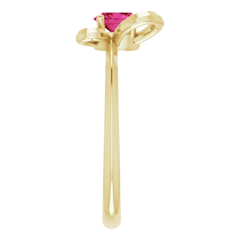 14K Yellow Gold 4x3 mm Oval July Youth Butterfly Birthstone Ring