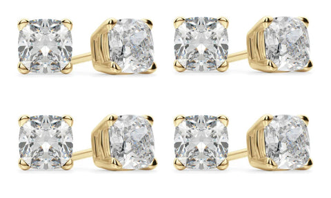 14k Yellow Gold 6mm 1Ct Cushion Cut White Sapphire Set Of Four Stud Earrings Plated