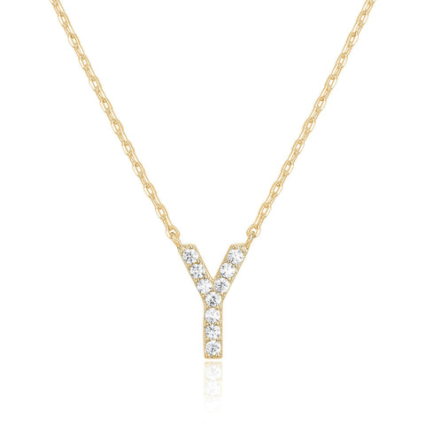 14k Yellow Gold Created White Sapphire Initial Y Letter Pendant Necklace Plated