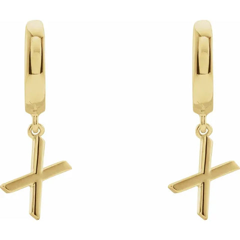 14K Yellow Gold Initial X Hinged Huggie Earring