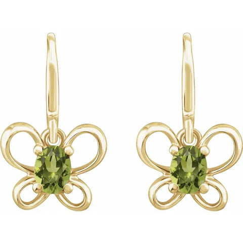 14K Yellow Gold Oval August Youth Butterfly Birthstone Earrings