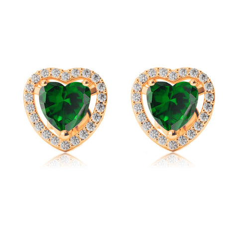 14k Yellow Gold Plated 1/2 Ct Created Halo Heart Emerald Stud Earrings