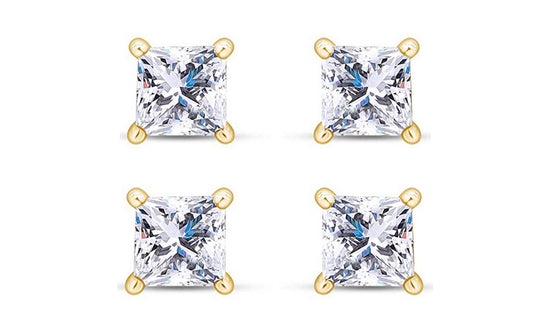 14k Yellow Gold Plated 1/2Ct Princess Cut White Sapphire Set Of Two Stud Earrings