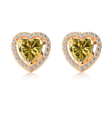 14k Yellow Gold Plated 2 Ct Created Halo Heart Yellow Sapphire Stud Earrings