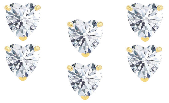 14k Yellow Gold Plated 3Ct Heart White Sapphire Set Of Three Stud Earrings
