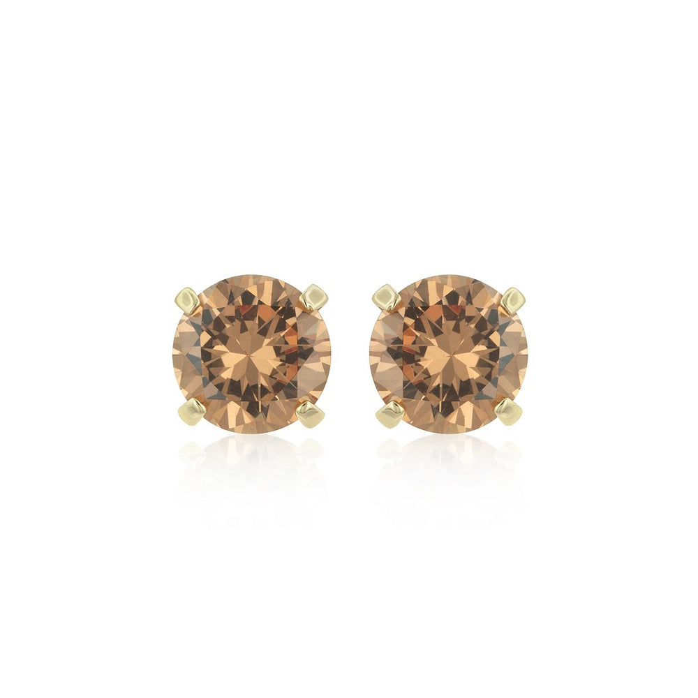 14k Yellow Gold Plated 4 Carat Round Created Champagne Sapphire Stud Earrings