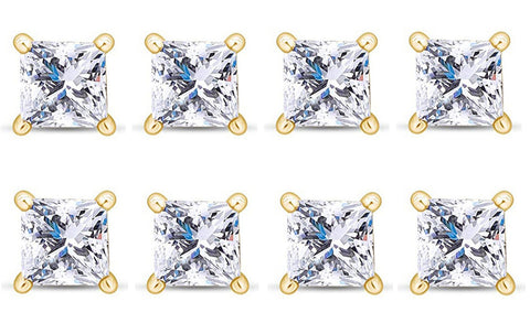 14k Yellow Gold Plated 4mm 1/2Ct Princess Cut White Sapphire Set Of Four Stud Earrings