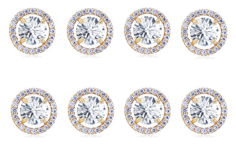 14k Yellow Gold Plated 4mm 1/2Ct Round White Sapphire Set Of Four Halo Stud Earrings